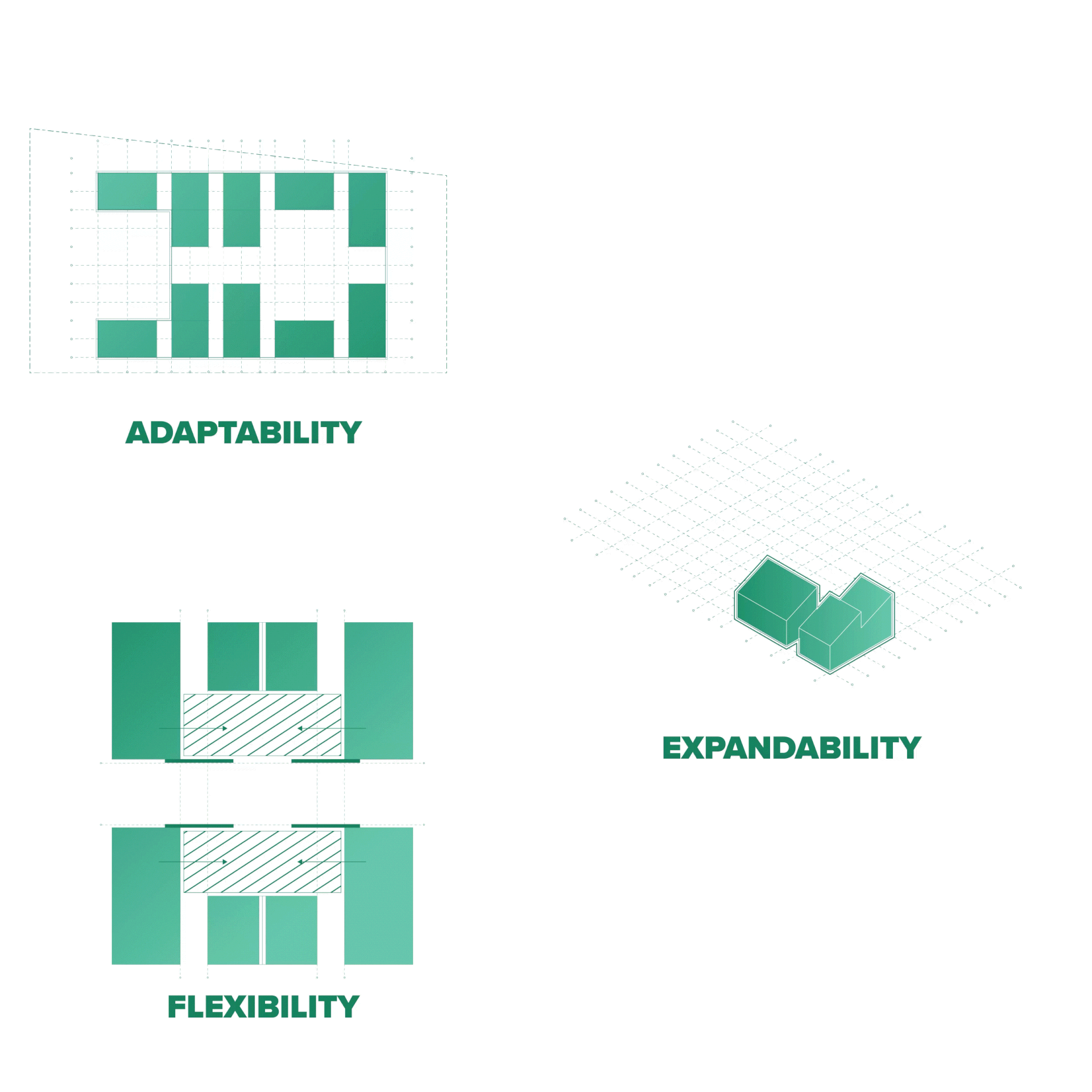 The Community Center is designed to adapt to the diverse requirements of different village's site boundary conditions. the modular approach, being activated by a strategic grid, enables each community center to be tailored to its specific environment and cultural contexts. Modules can be arranged to form various spatial configurations, allowing the building to serve multiple purposes on each site, from educational and nursery facilities to social and recreational spaces.
