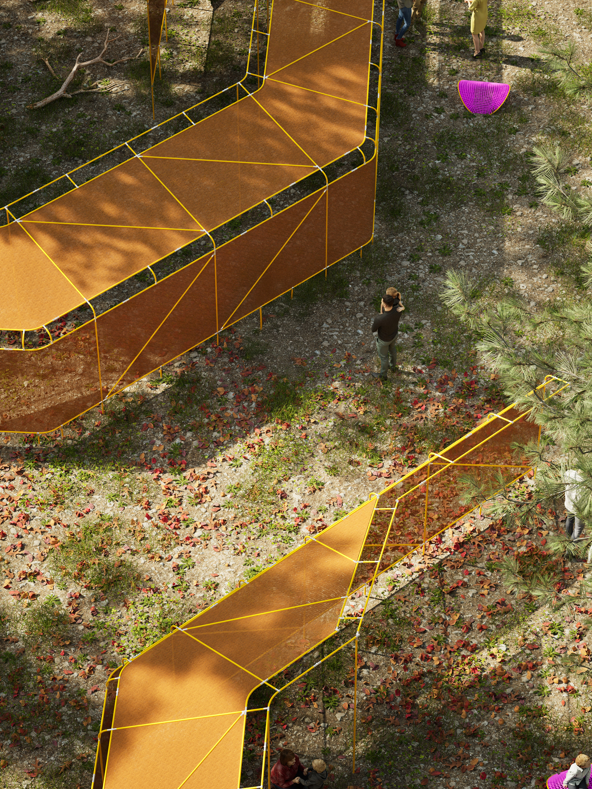 Beyond its visual impact, Prismatic Parkway serves as a hub for social engagement and creativity. Public programs and workshops encourage local participation, fostering a sense of ownership and connection to the space. Built with durable materials including aluminum EMT tubing and reinforced concrete footings, the installation prioritizes both safety and playfulness. Whether for a picnic, a casual meetup, or a quiet moment of reflection, Prismatic Parkway reimagines Maja Park as a dynamic and inclusive urban retreat.